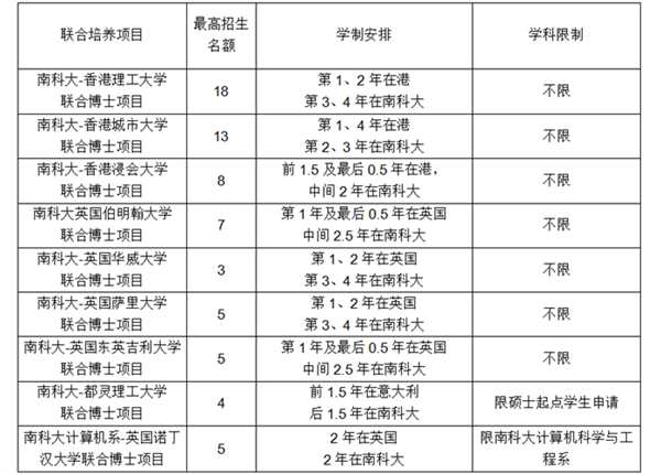 1. 以上项目学制根据双方学校协议确定,特殊情况需改变学制安排,须经南科大院系及研究生院批准。