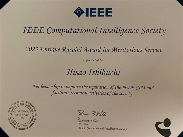 2023年6月,在美国芝加哥举行的Evolutionary Computation 2023国际会议上,南方科技大学计算机系Hisao Ishibuch讲席教授被IEEE计算智能学会授予2023 Enrique Ruspini Award。该奖项旨在表彰Hisao Ishibuchi教授对IEEE Computational Intelligence Magazine(IEEE CIM)以及学会所做出的杰出贡献。今年全球仅有两位学者获此殊荣。获奖证书IEEE Computational Intelligence Magazine是计算智能领域国际知名的顶级期刊,中科院一区,2022年的影响因子为9。Hisao Ishibuchi教授曾于2014-2019年担任IEEE CIM的主编。Hisao Ishibuchi讲席教授国家级专家IEEE FellowHisao Ishibuchi,现任南方科技大学计算机科学与工程系讲席教授,IEEE Fellow。研究方向包括人工智能、演化多目标优化、演化机器学习、模糊系统等,已发表国际期刊论文近200篇、国际会议论文超过600篇,Google Scholar总引用次数超过34,000次,H-指数为84。他曾担任IEEE计算智能学会副主席,IEEE Computational Intelligence Magazine主编,现在是IEEE Transactions on Cybernetics,ACM Computing Surveys 等权威期刊的副编。