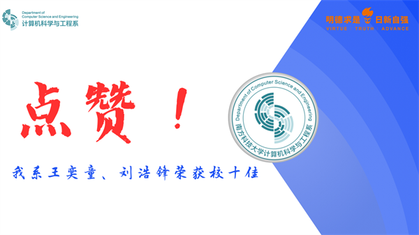 习近平总书记在党的第二十次全国代表大会报告中指出:“教育、科技、人才是全面建设社会主义现代化国家的基础性、战略性支撑,要坚持教育优先发展、科技自立自强、人才引领驱动,加快建设教育强国、科技强国、人才强国。”计算机科学与工程系有这样一批优秀青年,他们在求知的道路上奋勇向前,经历了无数个日夜的付出,如今,他们在学术研究和专业技能方面取得了卓越成就,成为计算机系乃至学校的骄傲。我系2019级本科生王奕童荣获南方科技大学2023届十佳本科毕业生,2020级硕士研究生刘浩锋荣获2023年十佳毕业研究生。王奕童校十佳本科毕业生导师:刘烨庞助理教授书院:致新书院毕业去向:华为技术有限公司sp offer/北京中科院信工所口头offer关于他:进入南科大后,他在专业课学习上认真努力,获得连续三年优秀学生奖学金一等奖,为未来就业打下坚实基础。他凭借自己出色的专业技能,多次获得国际级和国家级奖项,如数模美赛全球二等奖,软件测试大赛全国二等奖等等。在校期间,他积极践行深圳的志愿服务精神。他做过非常多学生工作:书院大学长、互助课堂大学长、计算机系学生助理等等都有他奉献。他积极推动南科大的教学发展。他开发的JAnswer作业答案系统,让师生走出教学资源难收集的困境;他维护的校内评测系统Arch OJ和JCoder,被95%以上的南科大学生使用,解决了先前作业反馈不及时的痛点。他在新国都支付有限公司实习,实习期间开发一整套分布式系统的测试模块,成功落地到实际的支付系统。毕业季他拿到华为技术有限公司的special offer,希望能够在业界检验自己,为社会做出贡献。刘浩锋校十佳毕业研究生导师:刘江教授毕业去向:新加坡国立大学 研究助理关于他:他是计算机科学与工程系的硕士研究生,担任学校田径队副队长。他学习认真刻苦,成绩排名专业第一;科研上潜心研究白内障眼底图像增强算法,发表10篇学术论文,其中包含多篇领域顶级论文,还申请发明专利6项,在MICCAI OMIA和MIDL担任审稿人;他积极参与实验室管理,协助指导20名本科生的创新实验和4项大创,带领本科生发表论文4篇。他在担任田径队队长期间,率领校队参加广东省大运会田径比赛,带队获大学城运动会团体总分冠军;他在广东省田径锦标赛中获4x100米第二名,在校运会和大学城运动会中多次获得100米和4x100米的冠军,并多次打破校纪录;他还积极参与组织工学院“迎新跑”、“青春跑”和“新年跑”等活动,带动广大同学强健体魄、塑造运动精神。他们是计算机系众多毕业生的代表,每一位计算机系毕业生都有着独特的故事和闪光的成就,他们的毅力、智慧和创造力将为社会和行业带来新的活力和动力。毕业时刻衷心地向所有计算机系2023届毕业生致以衷心的祝贺祝你们前程似锦计算机系是你们永远的家