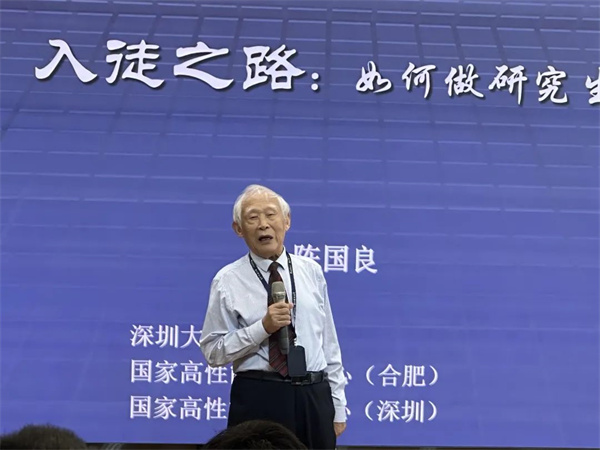 2022年10月27日,中国科学院院士陈国良教授做客南科大。陈院士以“入徒之路——如何做研究生”为题,围绕“如何参加科研”、“如何撰写学术文章”等十个主题,以幽默风趣的语言,通过生动形象的故事和自己的亲身经历,与在场师生分享了他对研究生学习与科研等方面的独到见解。计算机科学与工程系主任姚新教授、副主任王琦副教授、计算机系部分教师、图灵班20级、21级、22级学生以及部分研究生到场聆听了报告。讲座现场陈国良院士作报告陈院士从“如何走进师门”为切入点,希望同学们要“怀着崇尚科学之心踏入科学殿堂,抱定献身科研之志进入研究圣地”。他从基础理论、工程技术、应用技术三个方面分析了专业选择的侧重点。他阐述了科研过程中参加讨论的三个境界:初级阶段为 “言者有心,听者无意”;基本要求是“言者有心、听者有意”;最高境界则为“言者无心、听者有意”;学术研究中要遵从业成三境界:即“入境不易、贵在坚持、坦然业成”;要发扬团队合作精神,主配角互相支持。陈院士进一步提出,在研读论文的过程中,要“认真读懂、设法改进、大胆创新”,要不带偏见地进行思考而读。同时,要经过 “老师写、学生读”——“学生写、老师改”——“学生写、老师审”三关历练方能撰写出一篇好文章。 之后,谈及自我管理问题时,陈院士提倡同学们要“慎独”,要养成自主管理的习惯,做好低年级同学的表率。最后,在阐述师生关系相处之道时,陈院士通过“程门立雪”的故事,希望同学们要明白“青虽出于蓝,但毕竟出于蓝”,要牢记“一日为师,终身为父”的道理,要事事处处尊重老师。同时也建议老师们对待学生要严格、要理解、要宽容。同学现场提问陈院士与图灵班部分同学合影留念在互动环节,陈院士对在场师生提出的问题逐一进行了解答。他鼓励同学们要敢想敢为、勇于面对挑战,做一个独领风骚的新时代大学生。南方科技大学计算机科学与工程系供稿丨图灵班