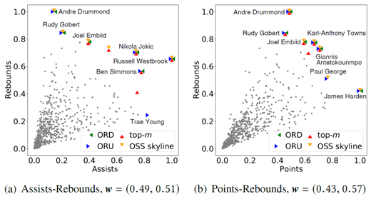 2021年来南科大计算机科学与工程系唐博课题组在时空数据库查询处理、知识图谱、信息检索等方向取得重要研究成果进展,共计在中国计算机学会推荐会议和期刊目录A类(以下简称“CCF-A”)会议和期刊上(SIGMOD、ICDE、SIGIR、TKDE)发表论文7篇、CCF-B类期刊Information Systems、Geoinformatica上发表论文2篇。 【影响力分析】商品影响力分析在商业智能应用(如商品推广、广告策略等)中有着十分重要的作用,唐博课题组和新加坡管理大学Kyriakos Mourtidis教授在数据库领域CCF-A类会议SIGMOD上首次提出mIR问题:给定用户数据集和商品数据集计算连续商品空间的高影响力区域,即在该区域的任意一个商品至少会成为m个用户的前k查询结果。该工作提出算法的计算效率比当前最优方法高出2-3个数量级。此外该技术还能用来高效回答商品开销最优化、商品提升策略优化等问题。南科大唐博为论文第一作者,17级本科生韩铭基为唯一本科生作者。此外唐博及其指导的硕士研究生李可明与合作者针对现有Top-K查询和Skyline查询的不足提出ORU和ORD算子,该工作被SIGMOD长文接收,成为全球为数不多在SIGMOD2021上发表两篇长文的数据库研究团队。图1:ORU和ORD算子在2018-2019年NBA球员数据上的案例分析(k=2,m=6) 【知识图谱应用】基于图的频繁模式挖掘问题在工业界中具有广泛应用(如金融领域、社交网络、新冠病毒等)。唐博课题组与澳门大学智慧城市物联网国家重点实验室数据科学研究中心主任余亮豪教授团队在ICDE 2021的研究长文中提出基于two-pass join机制的频繁模式挖掘算法,大幅度提高了现有算法的计算效率。南方科技大学博士生曾剑为论文第一作者,唐博为论文通讯作者,研究助理教授晏潇和2017级本科生韩铭基为论文合作者。该研究工作已被应用于新型冠状病毒图谱的知识挖掘和药物发现。 图2:基于新型冠状病毒知识图谱的频发模式挖掘 【近似查询处理】随着大数据时代的到来,近年来近似查询处理成为数据库领域的热门研究问题。针对时空数据库中常用的距离分布函数问题,唐博课题组和香港理工大学Man Lung Yiu教授和Qing Li教授合作提出具有理论准确性保证的高效距离计算框架。该研究工作发表在CCF-A类期刊IEEE Transaction on Data Engineering(TKDE,JCR-I区)上。南方科技大学访问学生、香港理工大学博士章佳豪为论文第一作者,唐博为论文通讯作者。图3:累计距离分布函数计算方法在时序数据,脑电波数据和轨迹数据上的应用 南方科技大学数据库课题组的研究得到国家自然科学基金、广东省自然科学基金、广东省教育厅新冠肺炎疫情防控科研专项、广东省类脑智能重点实验室、深圳市基础研究自由探索和深圳市斯发基斯图灵研究院的纵向科研经费与来自华为、阿里巴巴、字节跳动等国际知名IT企业的横向经费支持。